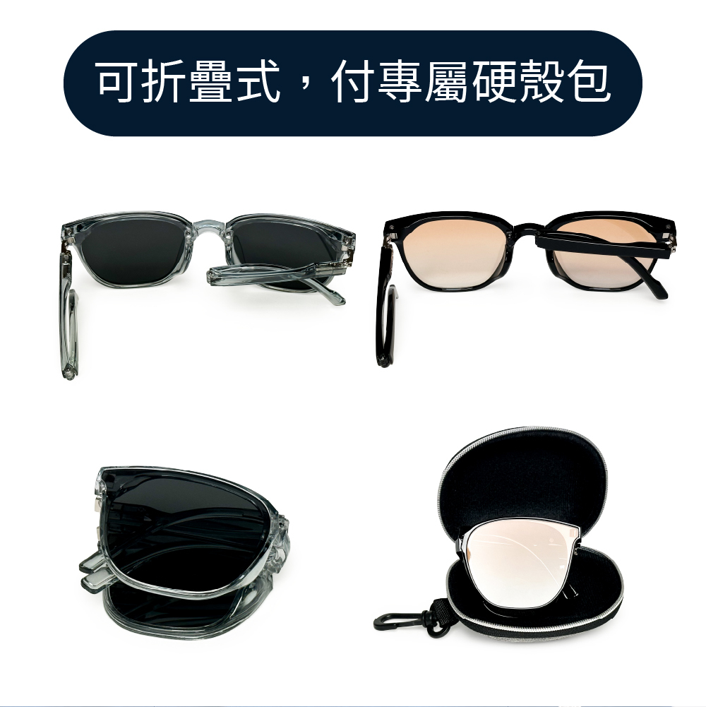 ● 鏡腳、鏡框採用可摺疊設計,時尚好收納。