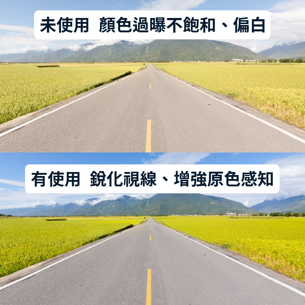 ● 銳化視線、增強原色感知。